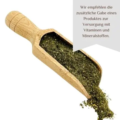 Leinkuchen (wärmebehandelt), Hefezellwände (Saccharomyces cerevisiae), Spirulina, Obsttrester (Apfel)